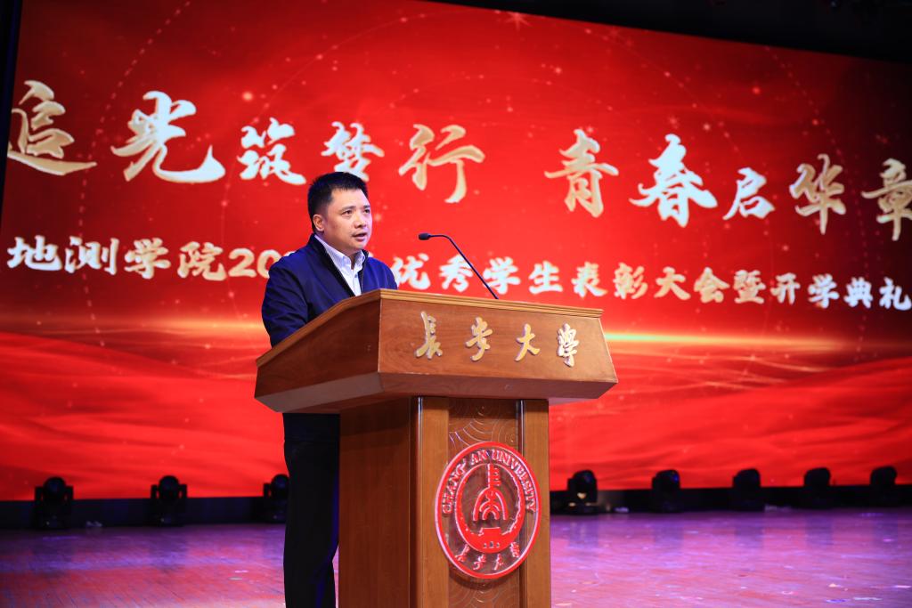 新生代表冀啸涵在发言中倡议:广大地测学子要以青春之“长”风,逐时代之“大”潮;博学笃志,扎实学识,练就本领;学榜样精神,承优良学风,铸非凡自我。