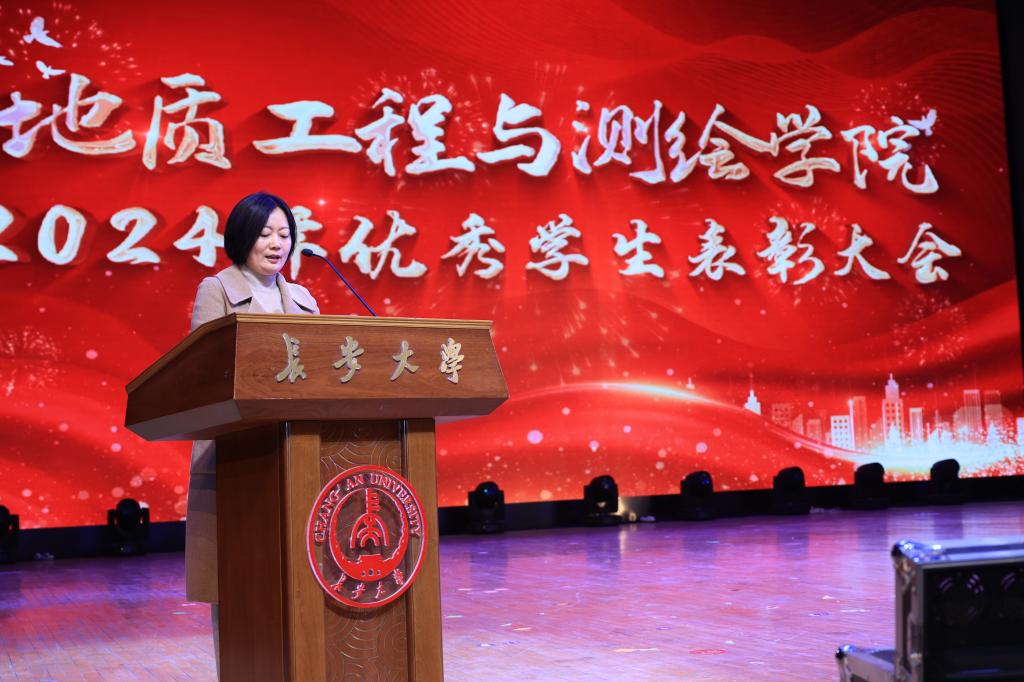 学院院长李振洪首先致辞,他代表学院全体师生对2024级全体新同学表示热烈的欢迎,同时对同学们提出了期望和要求:一是学习身边榜样,在学习中不断用知识完善自我,顺应时代大局,立鸿鹄之志,做挺膺担当奋斗者。二是以热爱为本,守初心之约,在专业学习中强化本领和担当,将个人梦想与强国使命相连,心怀家国,做民族复兴贡献者。三是以创新为帆,踏时代之浪,系统学习、锚定需求,青年学生更要勇于探索,读好“有字”“无字”之书,做全面发展“地测人”。
