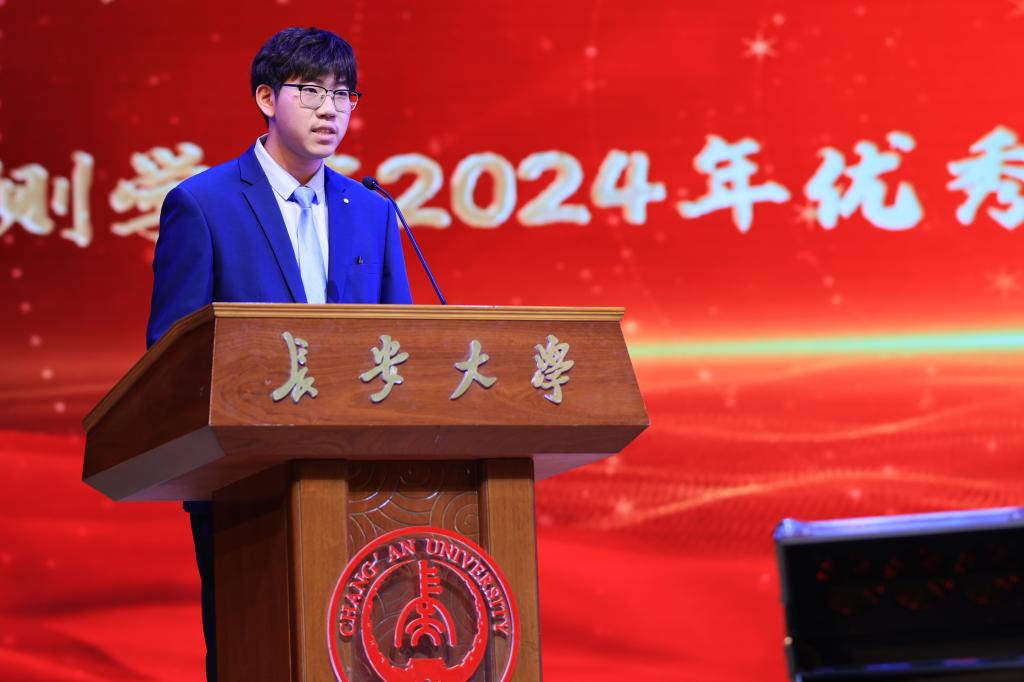 获奖学生代表霍加恩别克·海拉提别克回顾了自己戎装戍边的军旅生涯,用实际行动诠释了责任与奉献,他寄语2024级新生要彰显新时代长大学子的责任与担当,在奋斗中实现青春理想。