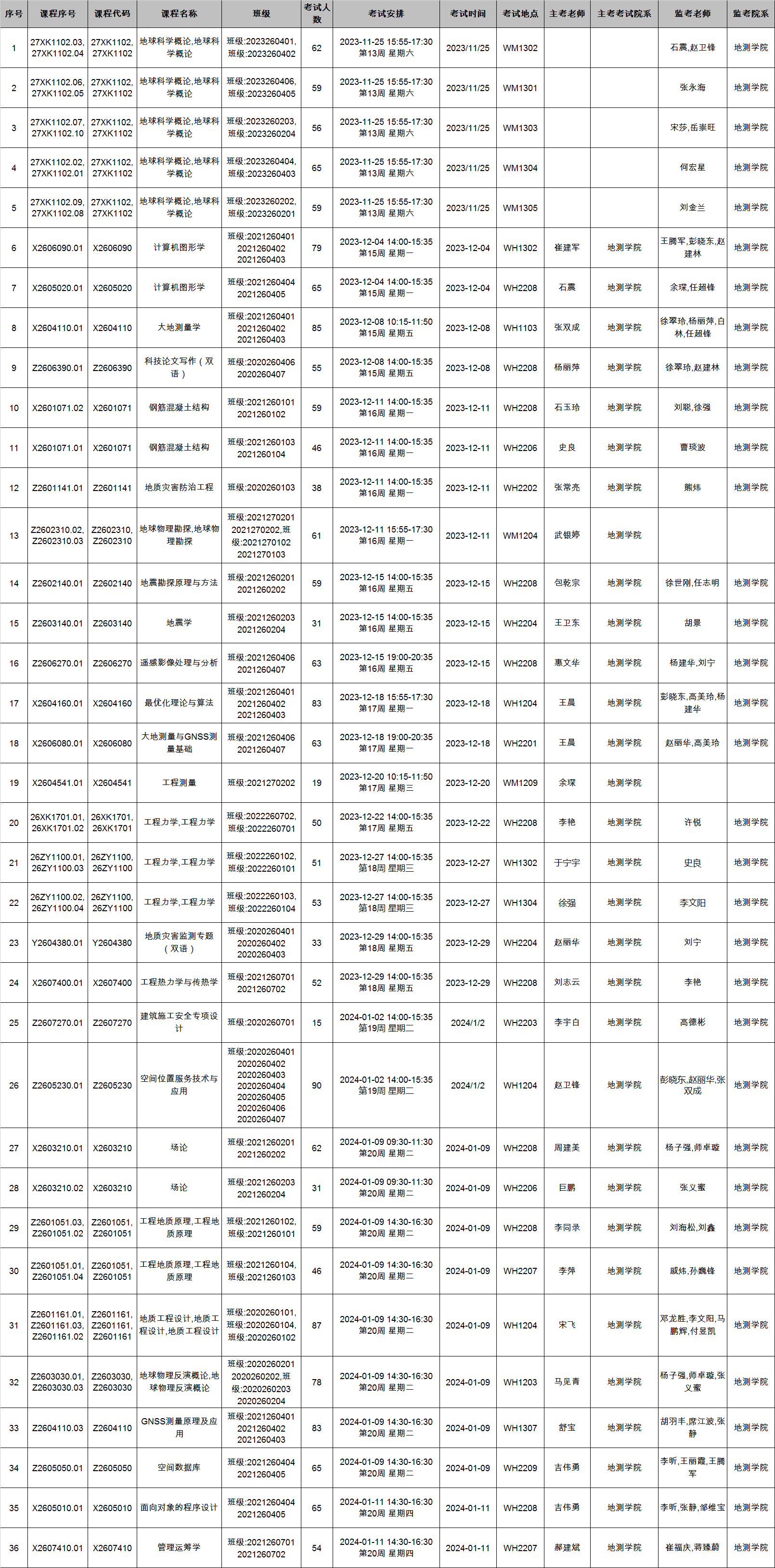 本学期第12周后结课的所有17直播 开课课程期末考试监考安排已发布,监考安排学院已经在本科教务系统中填报完成(监考教师可同时在本科教务系统中查看监考安排)。为确保考试平稳顺利进行,学院已将相关监考工作安排表格上传到附件中,请各位老师及时下载查阅,并按时完成监考工作。