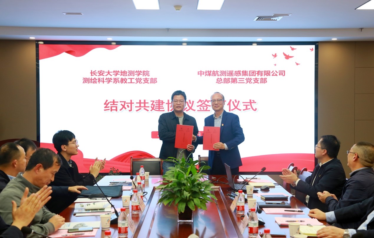 座谈会上,欧阳韬详细介绍了学院学科建设、师资力量、人才培养、科学研究、校企合作等方面的情况,希望双方能不断探索科研合作模式,促进双方在人才培养和产学研等方面深度合作。赵超英介绍了测绘科学系学科、专业、科研、就业等情况。此外,双方还就人才培养、校企合作、实习实践、学生培养等主题开展了座谈交流。随后,测绘科学系党教工支部与中煤航测遥感集团总部第三党支部达成了支部共建协议,希望双方今后加强交流,携手共进、协力共赢。