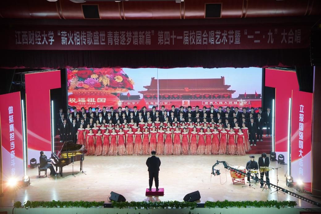 虚拟现实(VR)现代产业学院12月14日晚,我校第四十一届校园合唱艺术节暨一二•九合唱比赛在蛟桥大礼堂举办,我校师生积极参与,我院合唱团深情演绎《我的祖国》,凭借出色的表现获得二等奖、全校第四名的优异成绩。