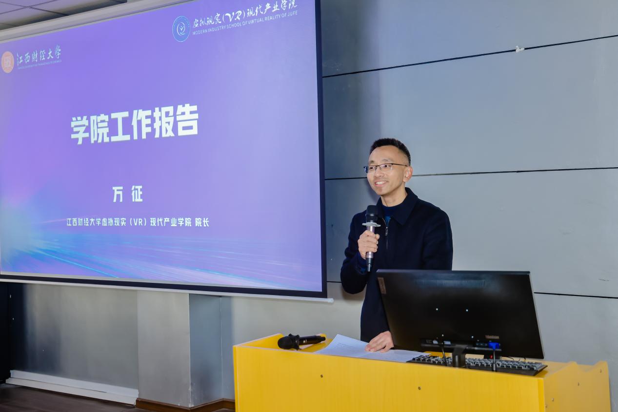 虚拟现实(VR)现代产业学院 12月26日,江西财经大学虚拟现实(VR)现代产业学院理事会换届大会暨数“智”未来产业发展论坛在枫林园校区顺利召开。校党委常委、副校长谢花林当选新一届理事会理事长并发表讲话,来自企事业单位、行业协会、科研机构的45位理事代表齐聚一堂,共商学院高质量发展与产业深度融合的路径与策略。